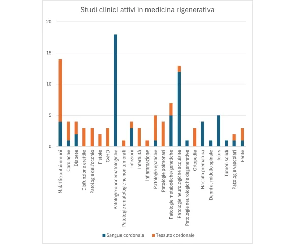 Il trapianto e quindi l’utilizzo delle cellule staminali per il trattamento di numerose malattie è sempre più frequente. Sono attivi diversi studi clinici con lo scopo di estendere le capacità terapeutiche delle staminali da sangue e tessuto cordonale a nuove patologie, sia tramite terapie cellulari sia nel contesto della medicina rigenerativa.