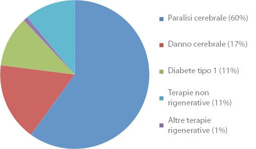 Le applicazioni sperimentali terapeutiche delle cellule staminali da cordone ombelicale (211 casi)