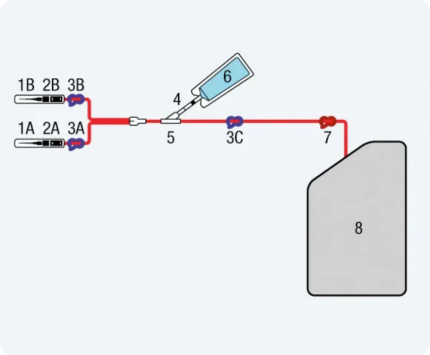 - 4: Cannula per immissione di anticoagulante addizionale (in caso di campioni di oltre 150 ml)