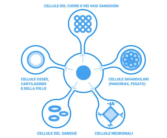 Le cellule staminali sono cellule “madri”, di cui non è ancora definita la funzione all’interno dell’organismo. Queste rimangono immature, finché non interviene uno stimolo che le induce a differenziarsi in cellule specializzate per adempiere a una specifica funzione (diventare organi o tessuti).