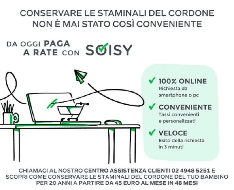 Vi ricordiamo che il pagamento del saldo del servizio nelle varie modalità descritte si attiva esclusivamente alla comunicazione di idoneità del campione da parte di Sorgente, nel primo mese dopo il parto.